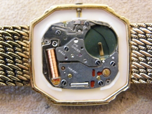 当店で機械内部を調べてみると、電池が外された状態でした。潤滑油が劣化していましたので、分解掃除と電池交換をご提案しました。